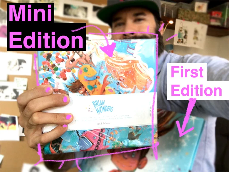 VR:  Good question.  I couldn't help it.  With the First Edition Brian Wonders I printed a micro batch of 250 copies -- each storybook came individually signed, numbered with a custom-made slipcover, and for a bunch of reasons they went out to a very limited audience of family, friends, and collectors.  But I love these books so much that I really want to see them in more people's hands.  So I decided to run a 2nd printing, this time printing 1000 copies.  As an independent artist, I had to change a couple of things in order to make this 2nd run feasible.  This 2nd run of storybooks have been repackaged and streamlined and I hope they do reach a wider audience.